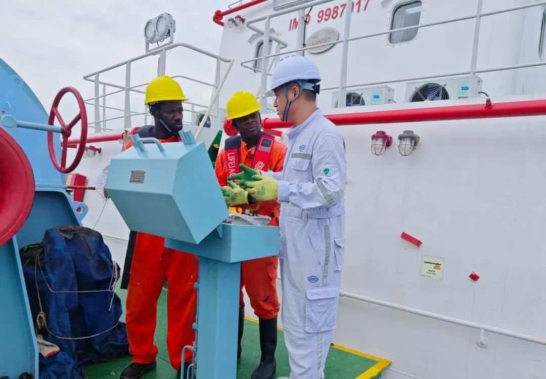 攻克“跟浪过驳”技术难关,让5.5万吨级巨轮在河道安全装卸;自主完成浮吊配重、拖轮技改,自驾驳船跨越1.1万海里,把中国航运技术“种”在西非;